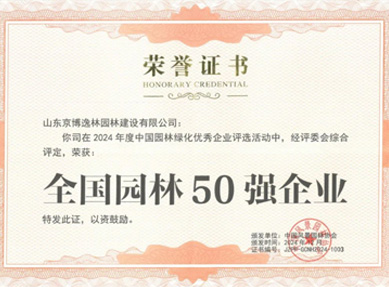 榮獲“全國(guó)園林50強(qiáng)企業(yè)”榮譽(yù)稱(chēng)號(hào)。
