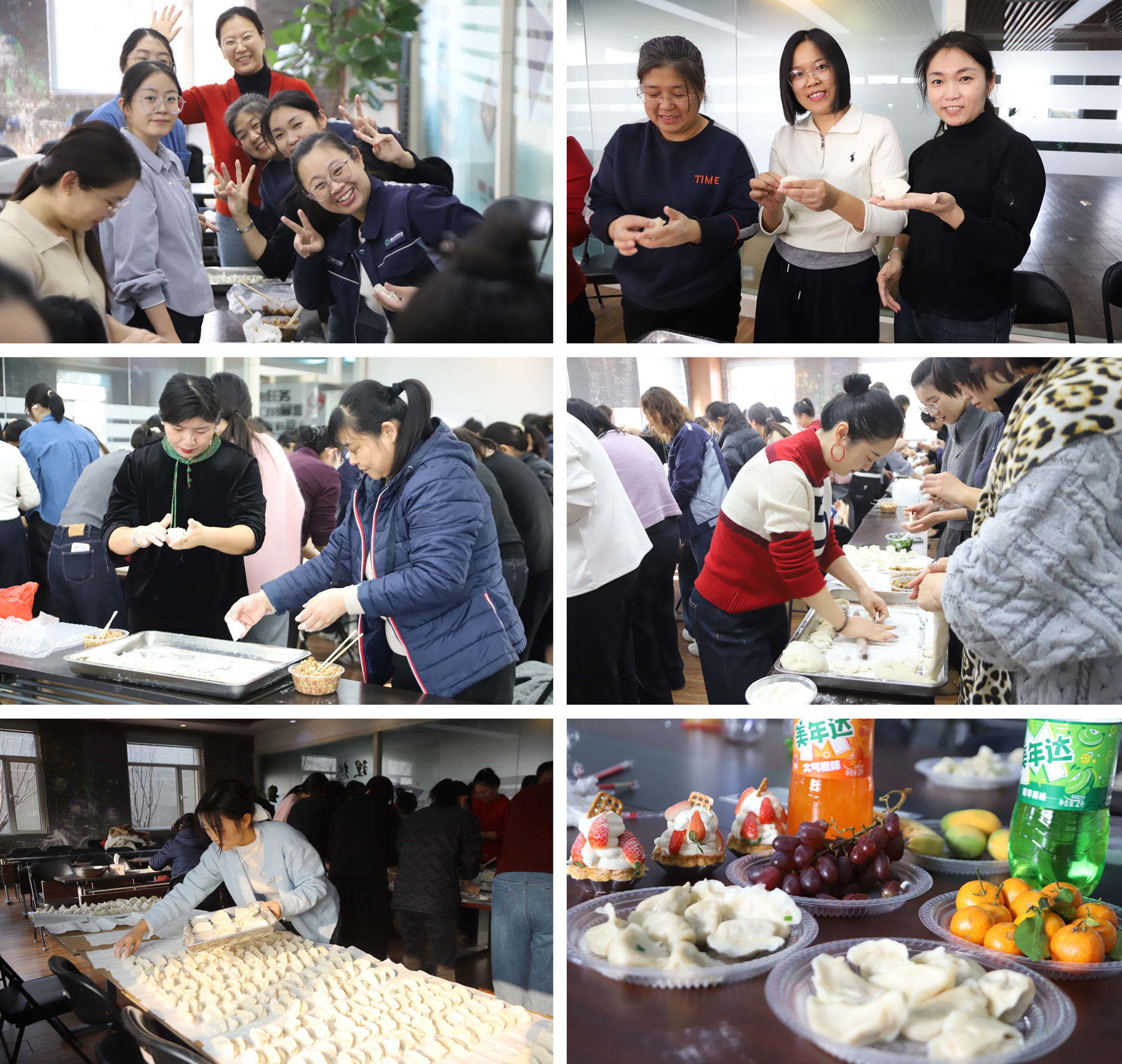 隨后,全體成員分組同步展開團隊協(xié)作。一組同事投入到辦公區(qū)環(huán)境整理中,在勞動中踐行“除舊布新”的煥新理念;另一組同事則圍聚在一起,揉面、搟皮、包餡,在笑語中共同完成數(shù)千只餃子的制作。兩組活動雖形式各異,卻共同彰顯了團隊在協(xié)同中行動、在差異中共創(chuàng)的精神內涵。